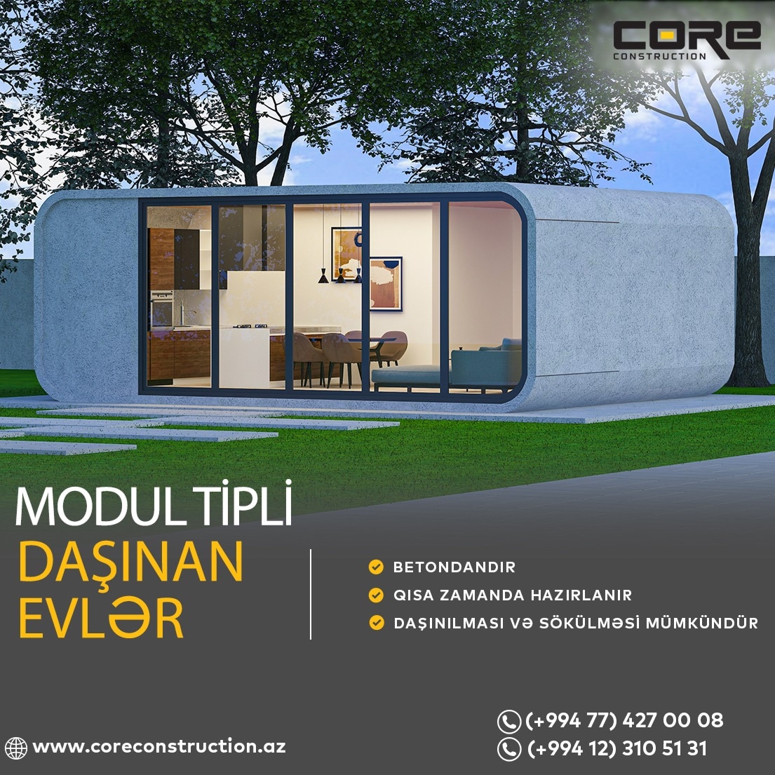 Sizə yeni nəsil modul tipli daşınan evlərimizi təqdim edirik.